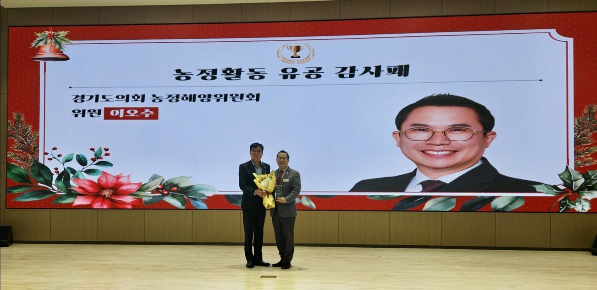 농협중앙회는 “이오수 의원은 경기도 농정 주요 현안에 깊이 관여하며, 특히 지속 가능한 축산환경 조성, 경축순환농업 기반 확대, 농업인 교육ㆍ지원 강화 등 다양한 분야에서 농업인과 현장의 목소리를 정책에 반영하기 위해 힘써왔다”라며 감사패 수여 배경을 설명했다.