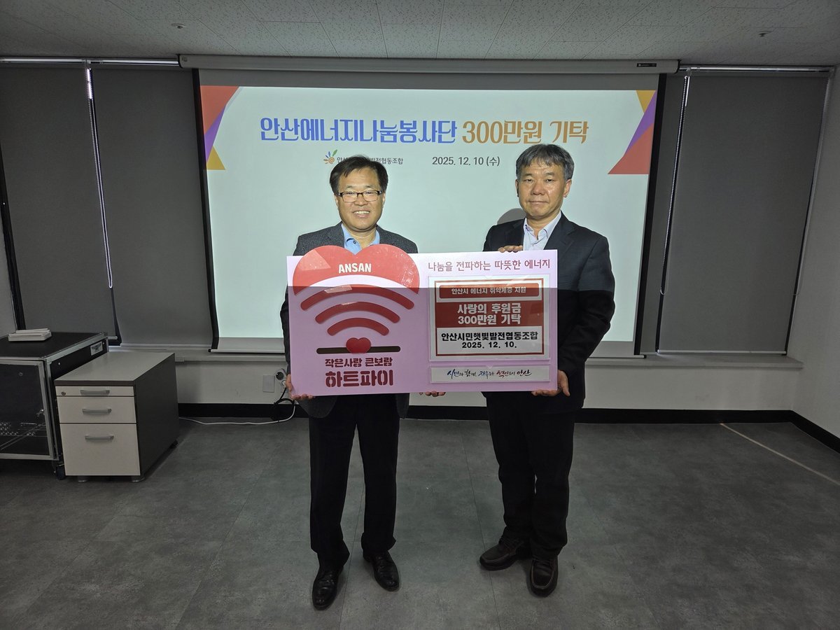 이에 김민 환경녹지국장은 “안산시민햇빛발전협동조합의 지속적인 나눔 활동이 에너지 취약계층의 생활 안정에 큰 도움이 되고 있다”며 “앞으로도 지역사회와 협력해 에너지 복지 증진에 최선을 다하겠다”고 말했다.