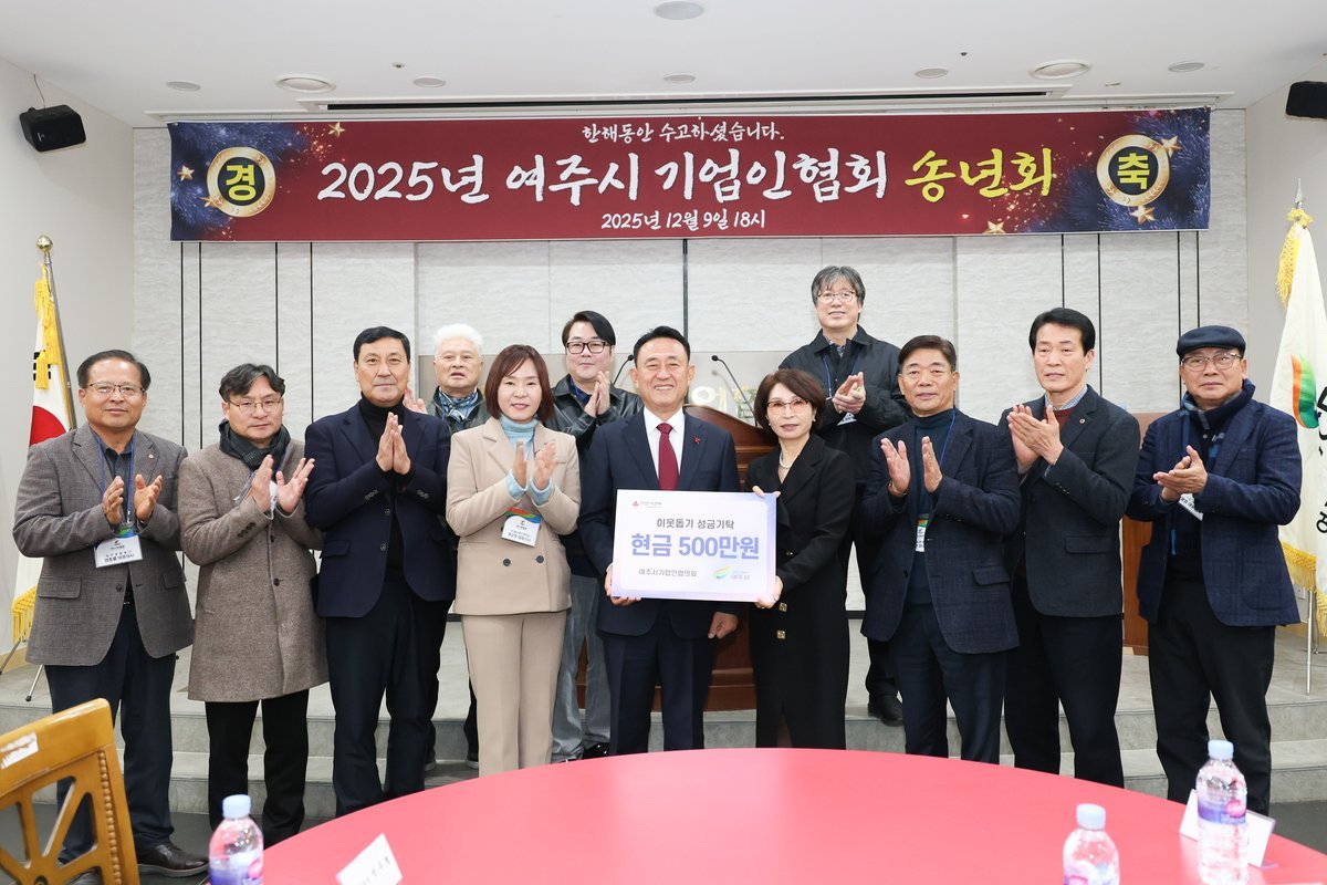 [금요저널] 여주시 기업인협의회는 지난 9일 여주축협하나로마트 대회의실에서 30여 명의 회원과 이충우 여주시장, 이용철 경제환경국장, 김영수 일자리경제과장, 경기신용보증재단 곽우혁 여주지점장, 경기도경제과학진흥원 안 경우 본부장 등이 참석한 가운데 2025년 여주시 기업인협의회 12월 정기모임 및 송년회를 개최했다.