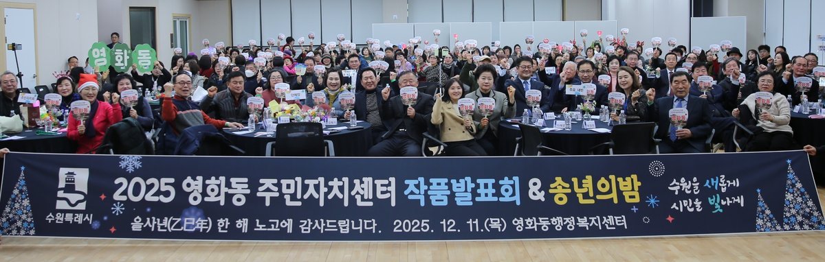 [금요저널] 수원시 장안구 영화동은 지난 11일, 동 행정복지센터 3층 대강당에서 한 해 동안 갈고닦은 실력을 뽐내고 올 한 해를 돌아보는 ‘2025 영화동 주민자치센터 작품발표회 & 송년의 밤 ’을 개최했다.