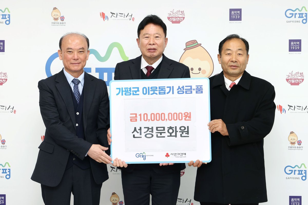 서태원 군수는 “매년 잊지 않고 따뜻한 손길을 전해주시는 선경문화원에 깊이 감사드린다”며 “기탁해 주신 성금은 가평군 취약계층 지원에 소중하게 활용하겠다”고 전했다.