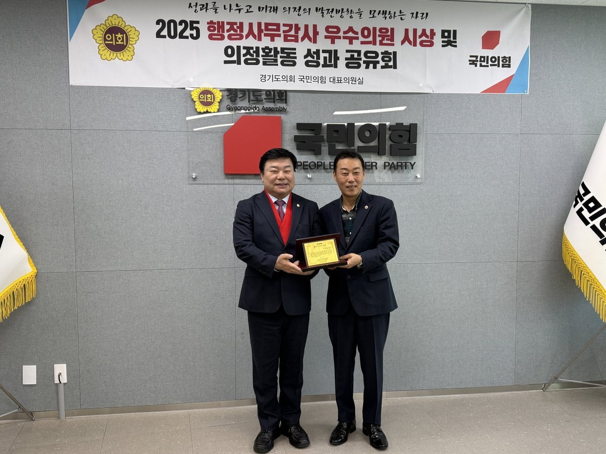 [금요저널] 경기도의회 이병길 의원은 12월 12일 경기도의회 국민의힘 대표실에서 열린 「2025 종합행정사무감사 대상 시상식」에서, 도정 전반의 문제를 면밀히 짚어내고 건설적 개선 방향을 제시한 공로를 인정받아 ‘우수의원’으로 선정됐다.