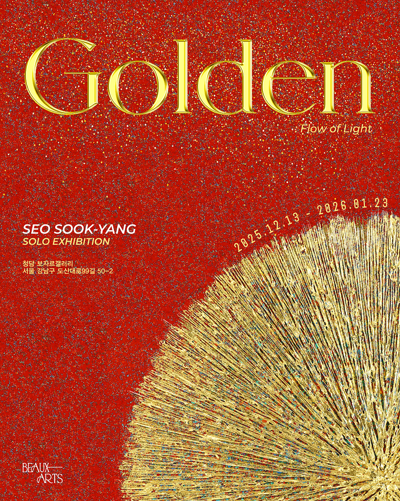 24K 순금 재료를 사용해 독창적인 시각 언어를 구축해온 서숙양 작가의 개인전 'Golden: Flow of Light' 전시가 2025년 12월 13일(토) ~ 2026년 1월 23일(금)까지 서울 청담 보자르갤러리에서 개인전을 진행 중에 있다. 작가는 금이라는 재료가 지닌 물질적·상징적 속성에 주목해 빛이 생성·확장·흐르는 과정을 회화적 언어로 구현해왔다.