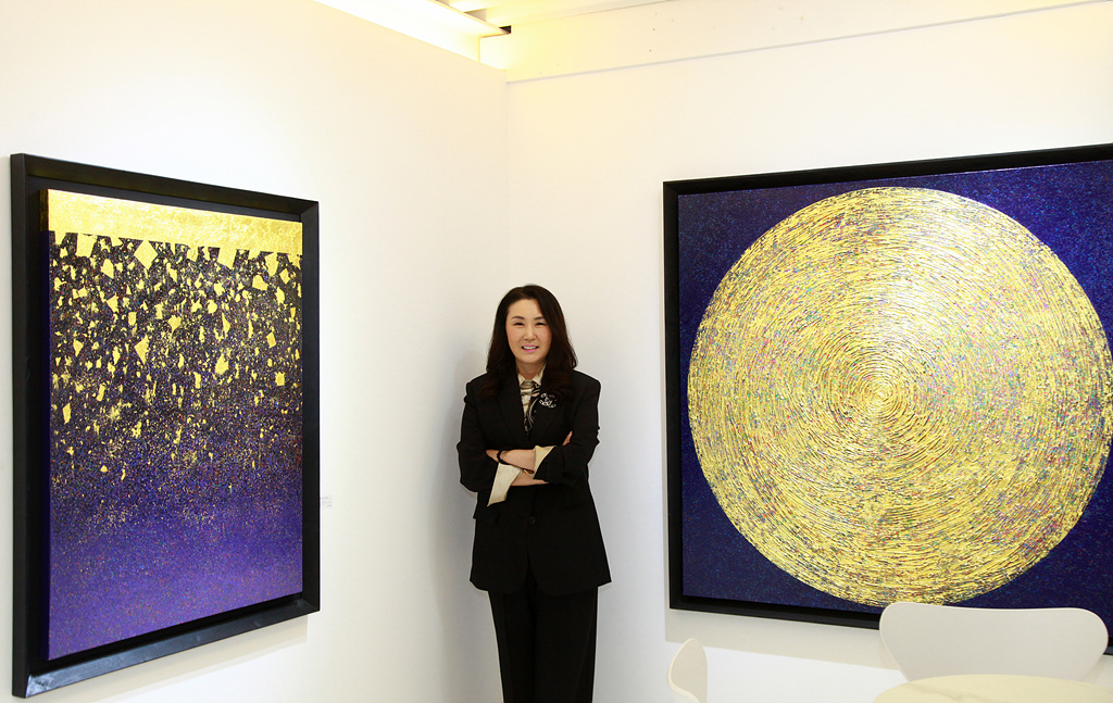 'Golden: Flow of Light' 전시를 펼치고 있는 서숙양 작가는 "가장 선명하고 특별한 빛을 순금 활용하여 표현해 생명에 대한 기원 그리고 희망적 미래의 가능성을 함축시켜 마음의 평안을 전하고자 했다."고 말했다.