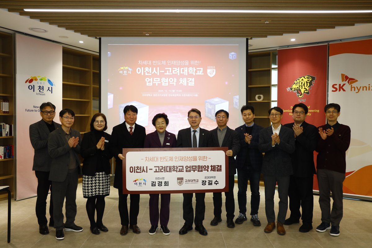 [금요저널] 이천시는 12월 15일 고려대학교와 지역 학생들의 교육 기회 확대와 차세대 반도체 인재 양성을 위한 업무협약을 체결했다.