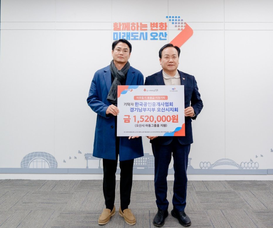 [금요저널] 오산시는 지난 15일 한국공인중개사협회 오산시지회가 그룹홈 아동 지원을 위한 성금 152만 원을 기탁했다고 밝혔다.