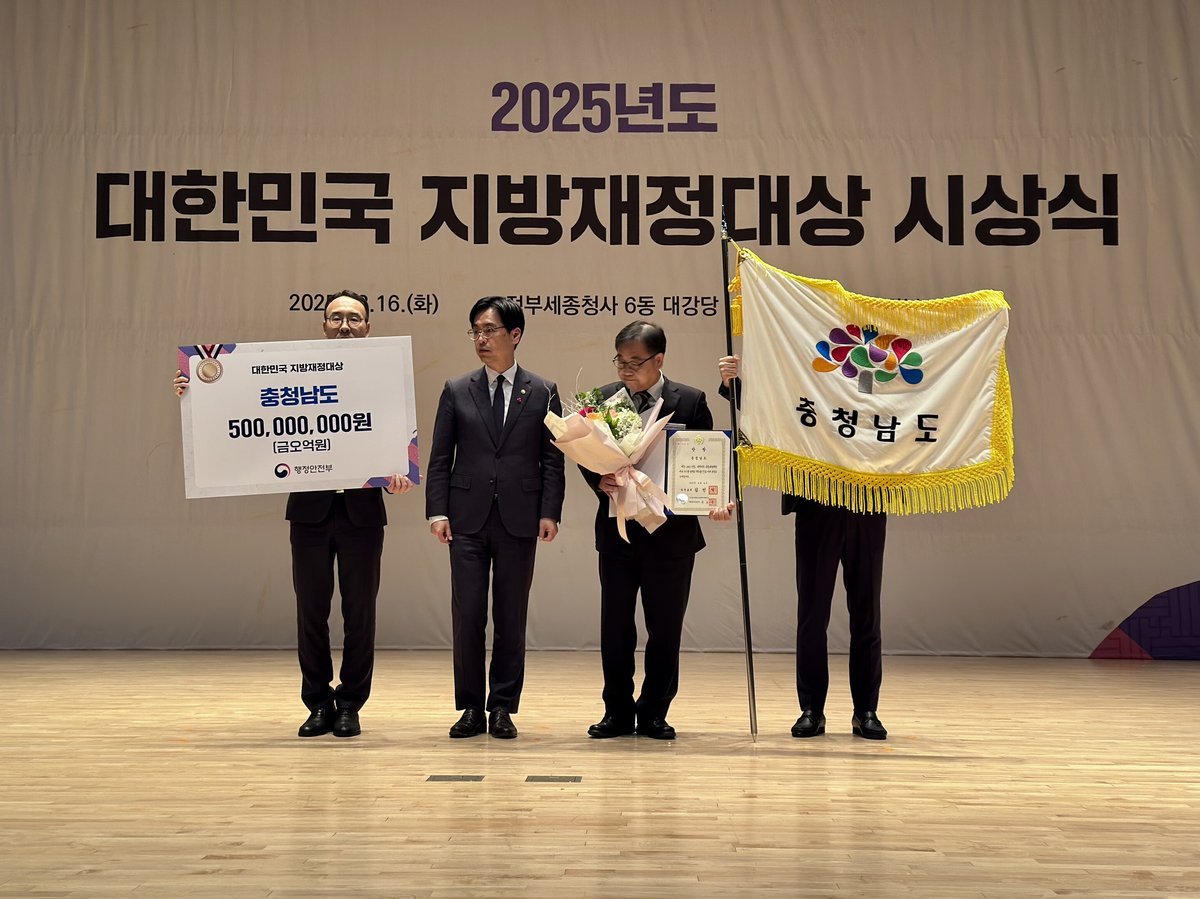 [금요저널] 충남도는 16일 정부세종청사 대강당에서 열린 ‘2025년 대한민국 지방재정대상 시상식’에서 국무총리상을 받아 재정 인센티브 5억 원을 확보했다.