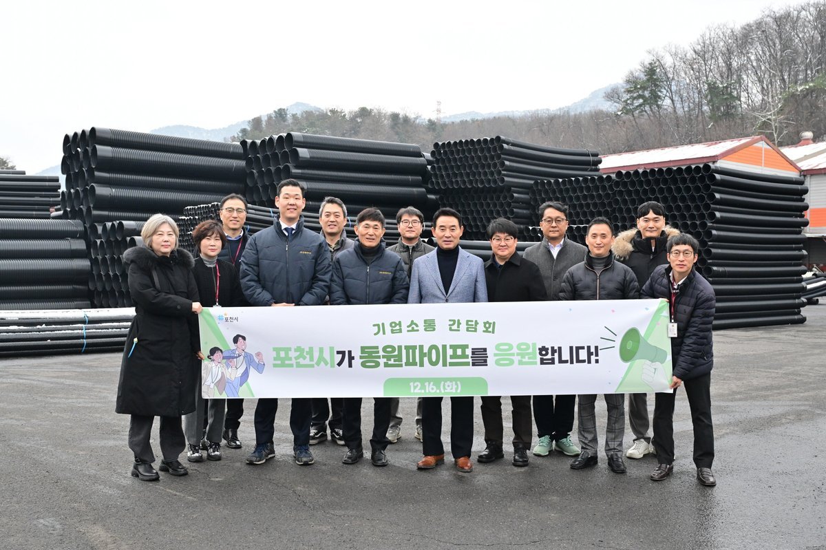 [금요저널] 포천시는 지난 16일 기업 경영 애로를 청취하고 현장의 의견을 수렴하기 위해 신북면에 위치한 동원파이프를 방문했다.