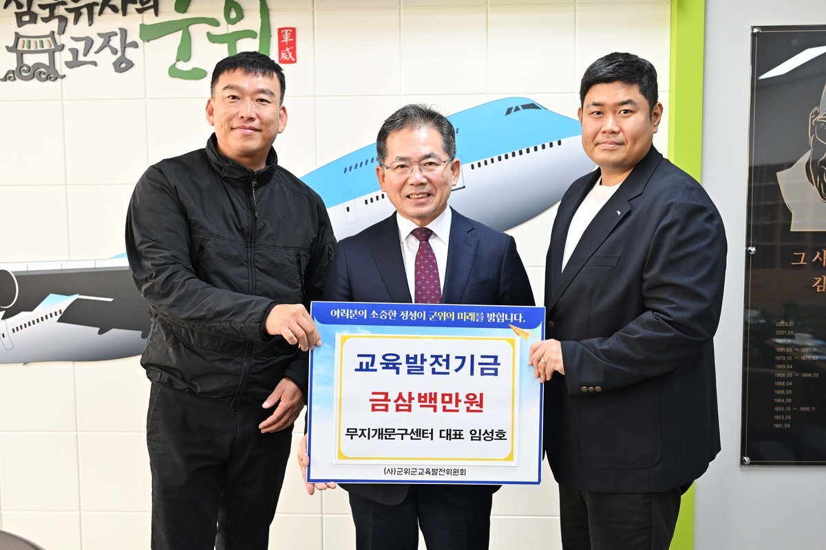 [금요저널] 무지개문구&군위보안시스템 임성호 대표는 지난 17일 군위군청을 방문해 지역의 교육 발전과 인재양성을 위해 써달라며 300만원의 교육발전기금을 기탁했다.