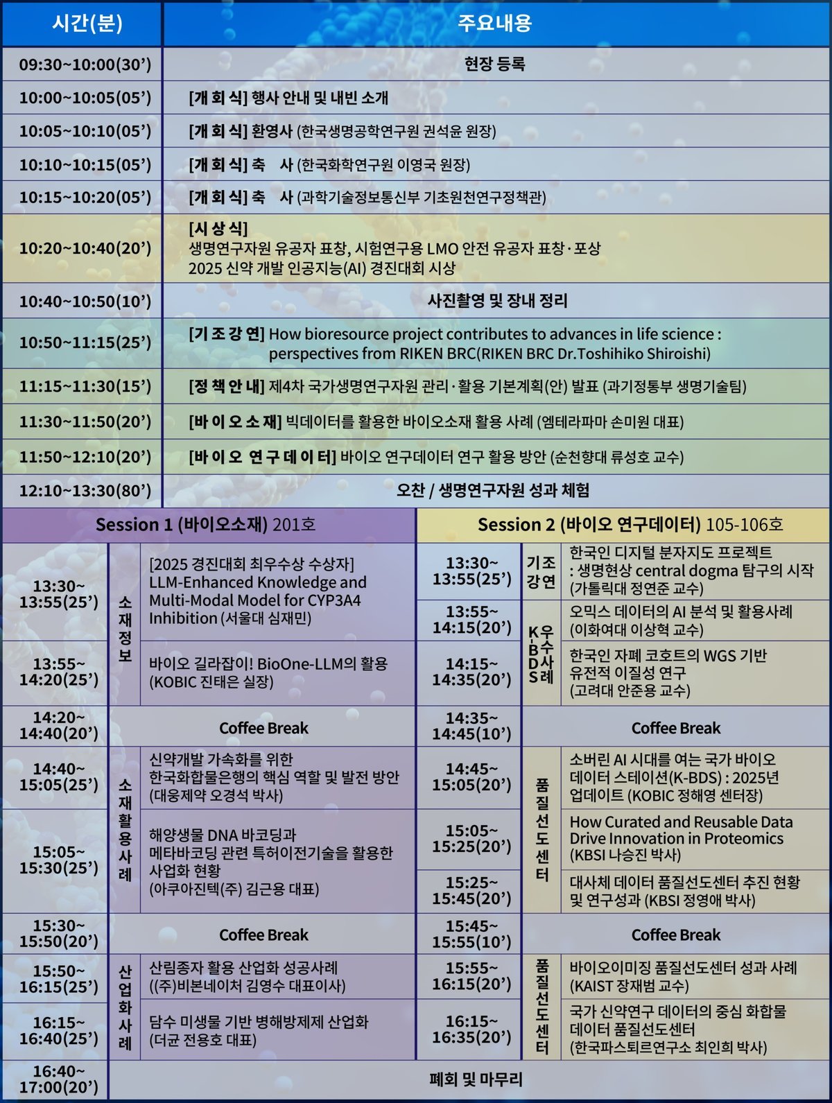 제4회 다부처 생명연구자원 성과교류회 세부 일정