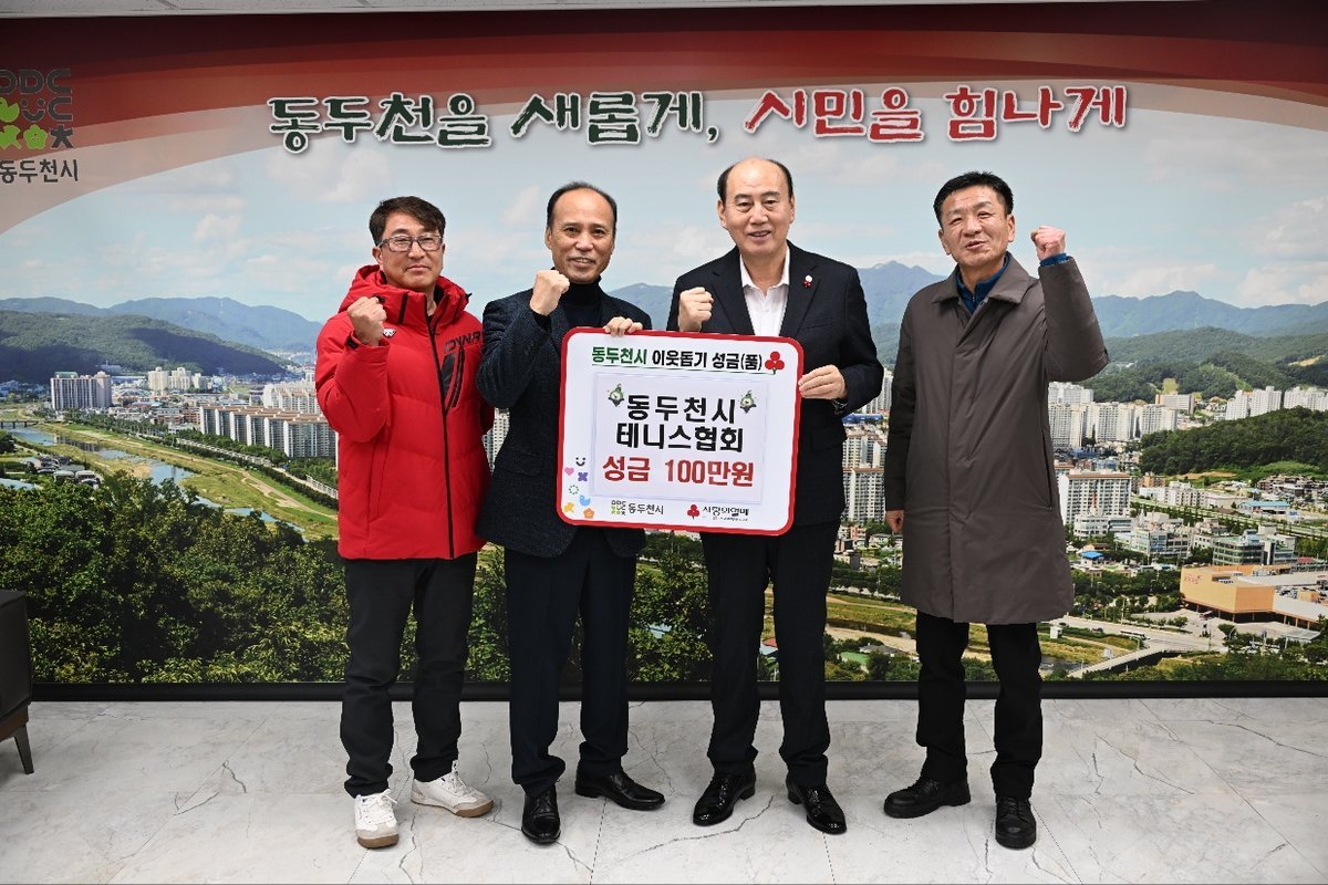 이상필 동두천시테니스협회장은 “회원들의 뜻을 모아 지역사회에 작은 보탬이 되고자 기부를 결정했다”며, “앞으로도 체육 활동은 물론 지역사회와 함께하는 나눔 활동을 지속적으로 이어가겠다”고 말했다.